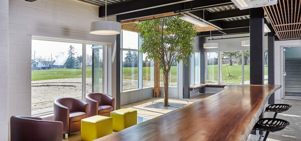 The owner and its consultants were looking for a contractor that was actively engaged in the project, offering suggestions, reviewing plans and solving problems. Design features— including exposed structural Douglas fir beams, a huge live-edge community table, and a two-storey fig tree—each came with their challenges for sourcing and installation. Construction was taking place while school was in session, so Schilthuis had to ensure students, staff and visitors were safe at all times.