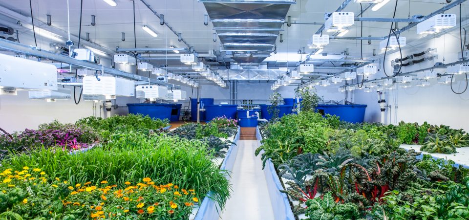 The building includes a nursery for fingerling fish, four growing rooms, a drying room, a vault and a packaging room. Plants are grown in a soil-less, organic, closed-loop system where fish produce the fertilizer. Air, light and moisture are critical to maintaining the ecosystem. The building, which is partially built into a hillside, has a green roof, 100 per cent LED lighting and a massive, state-of-the-art HVAC system.